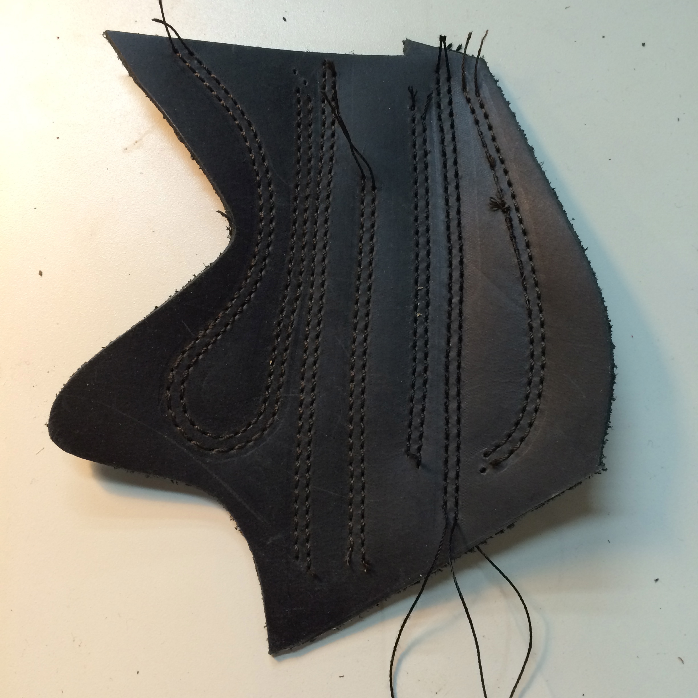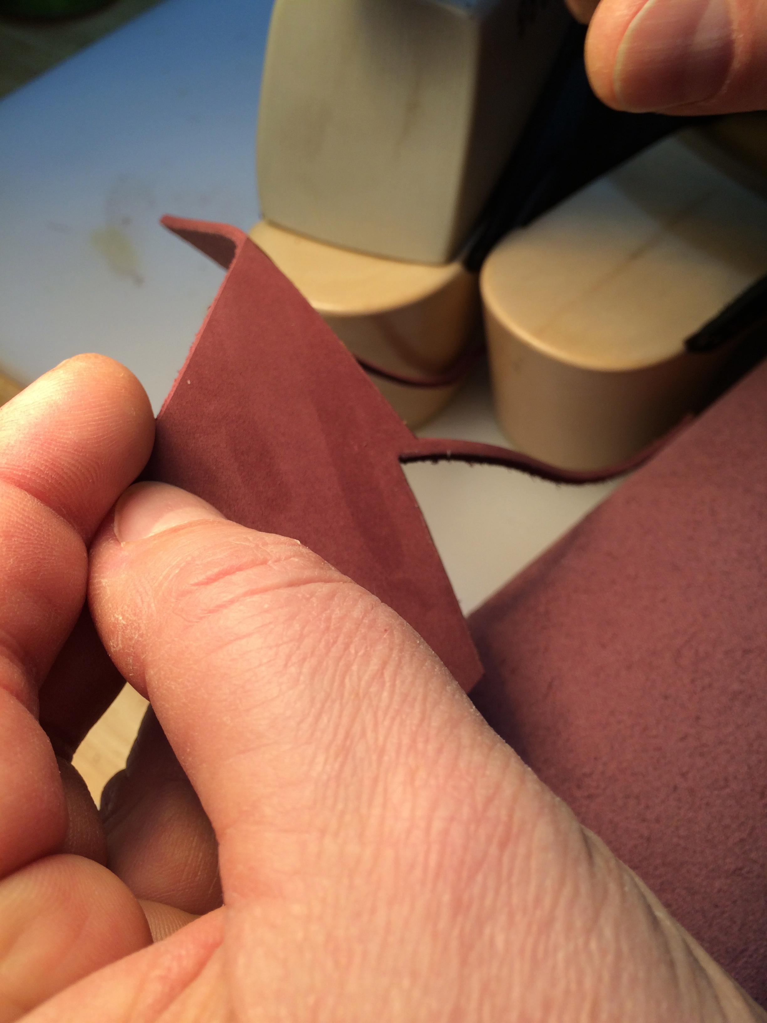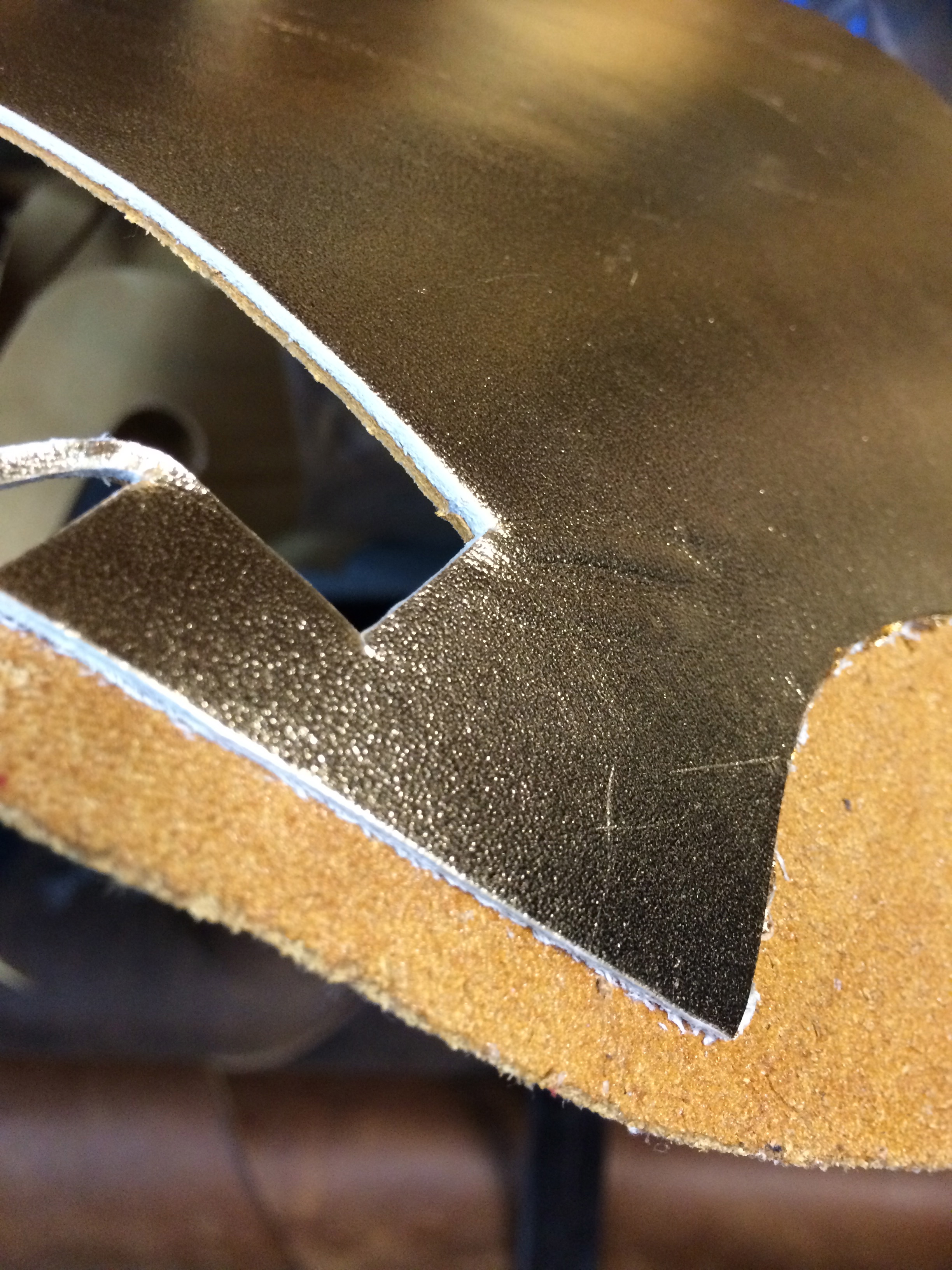 A piece of leather is skived (thinned) around the edges.