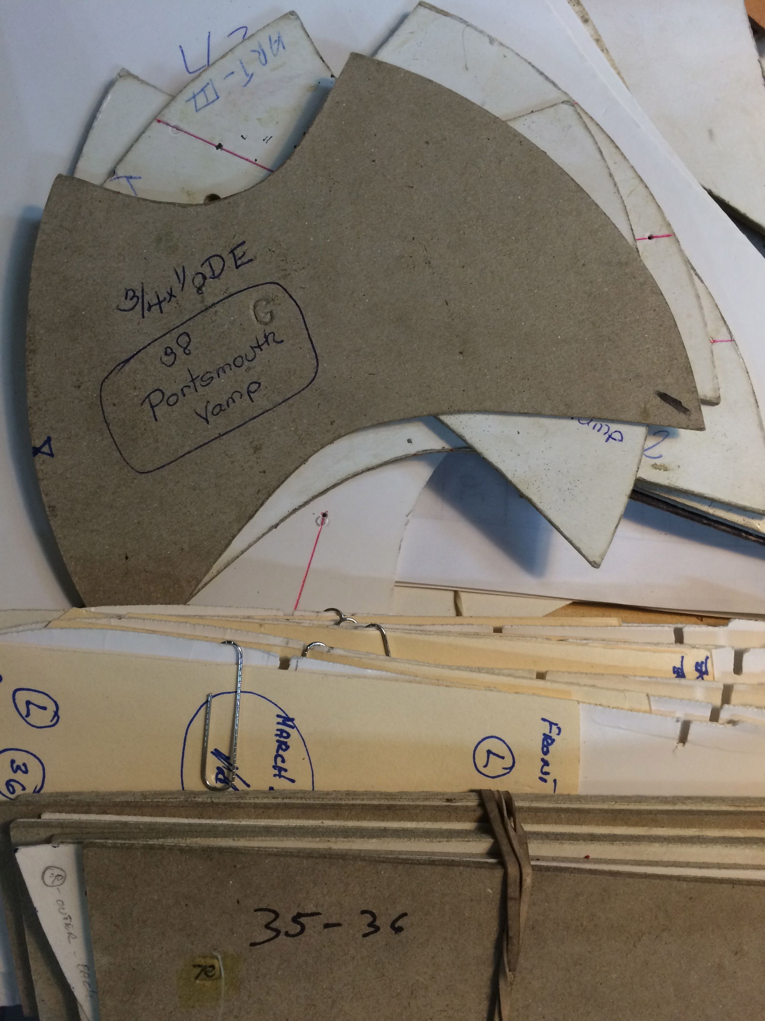 Before the shoes are constructed, patterns which vary according to shoe style are created: