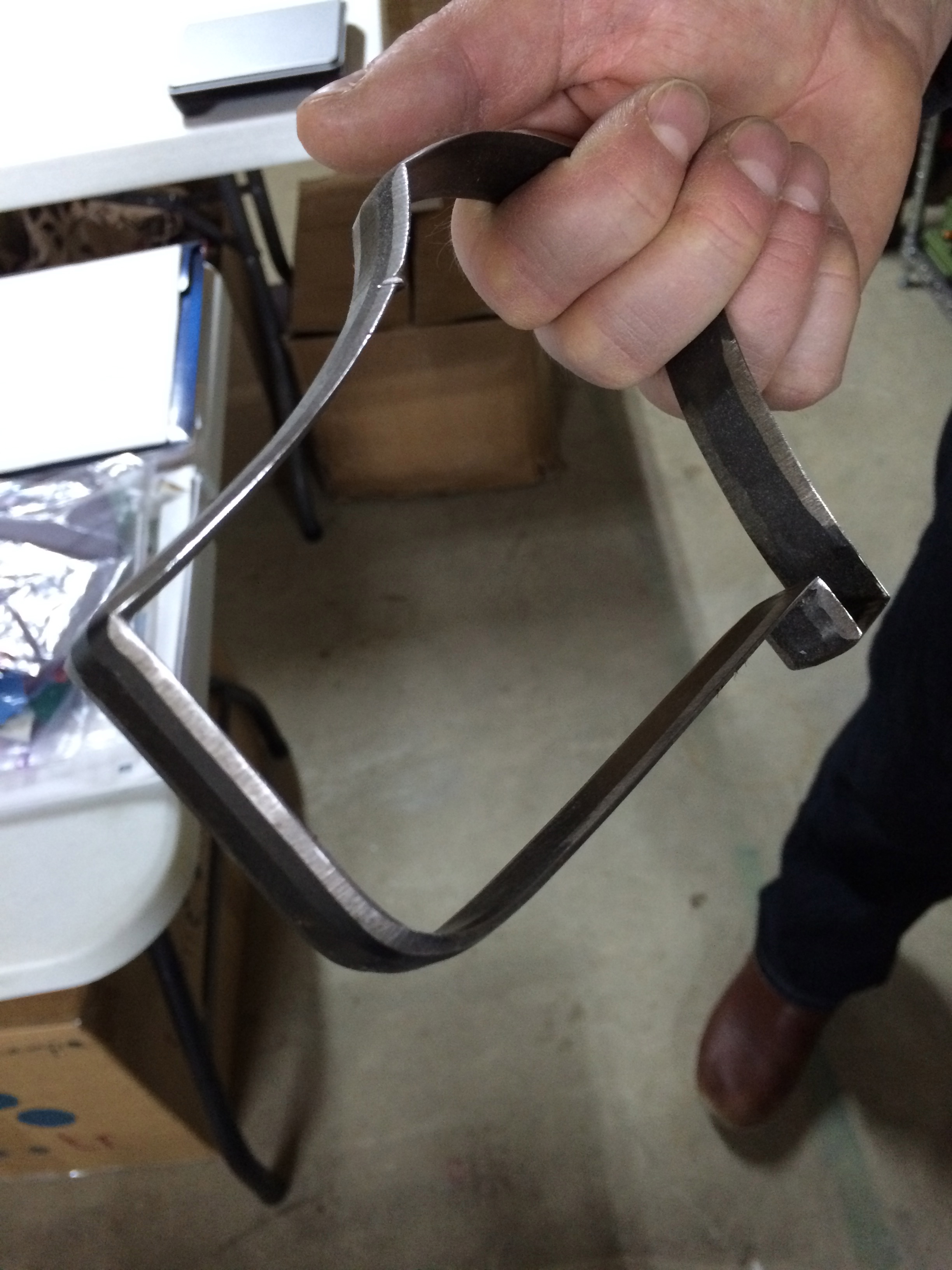 Proper curing is the final step in the process.  The leather is steamed and a last is inserted, cured into place with a nail and left to take shape: