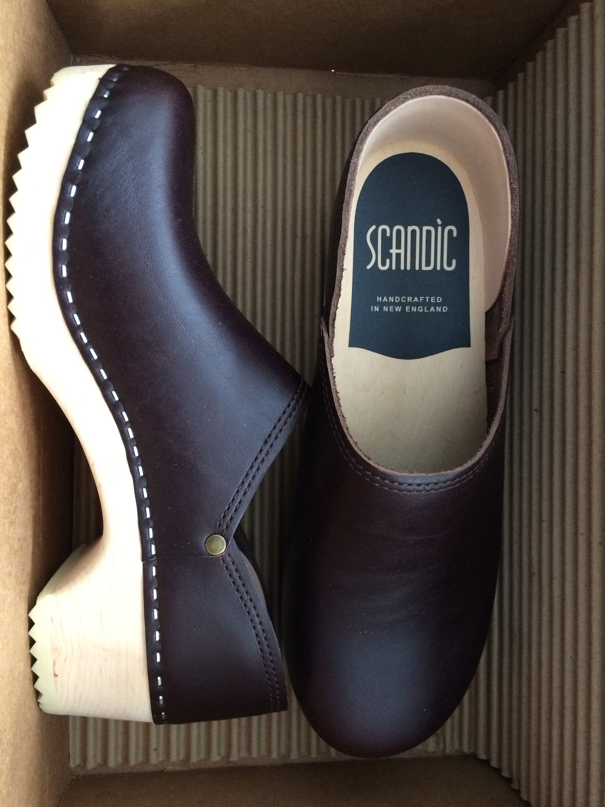 Given the wide and ever growing array of items in stores labeled “made in China” and now increasingly ubiquitous “designed in <insert country> made in China” ploy, one wonders whether an emerging group of single-minded, local business owners and producers will be able to stem the tide of more affordable (in the short run) yet inferior goods flooding the shelves.  My recent acquaintance with Scandic clogs offers reason for hope. Having originally spotted a pair on display while dropping off shoes for resoling at a local repair shop, their superior craftsmanship and quality were immediately evident.  Little time was wasted ordering the clogs in the appropriate size and the remainder of the week was spent in eager anticipation of their arrival. (*)  (They are currently made to order, unless one happens upon the right size at the right time, as limited size runs are available at stockists.  Alternatively, online orders can be placed through their website: scandicfootwear.com.)